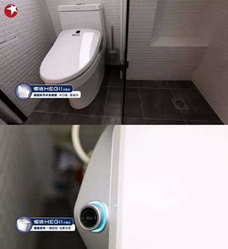 經過改造后的衛生間變得寬敞明亮,選用的衛浴產品也考慮得十分周到。「坐便器」設計師選擇了恒潔粉絲們熟悉的「超旋風坐鎮」,「3.5升的超低沖水量」卻擁有高出一截的超大沖刷力,「節水+沖凈一步到位」。有了如此強勁的馬桶還不夠,設計師還為坐便器配合了活水即熱的「恒潔智能馬桶蓋」,無需彎腰轉身,「水洗、烘干、清洗等功能一鍵完成」,從此訣別面壁思過的如廁方式。