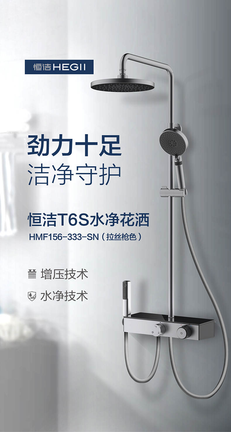 恒潔增壓技術,0.45mm極致細孔設計,出水密集柔和