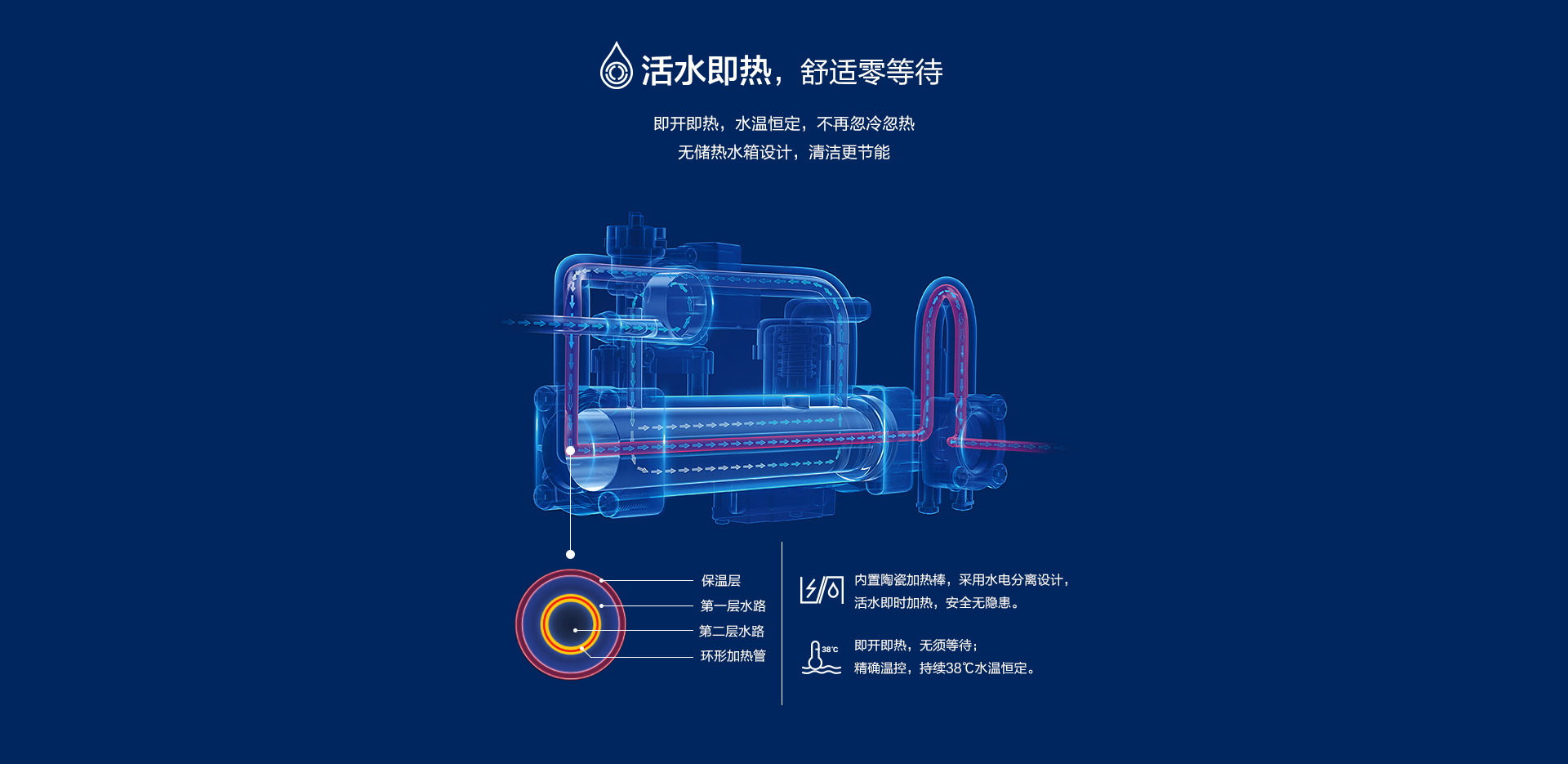 活水即熱,瞬間加溫,持久恒溫