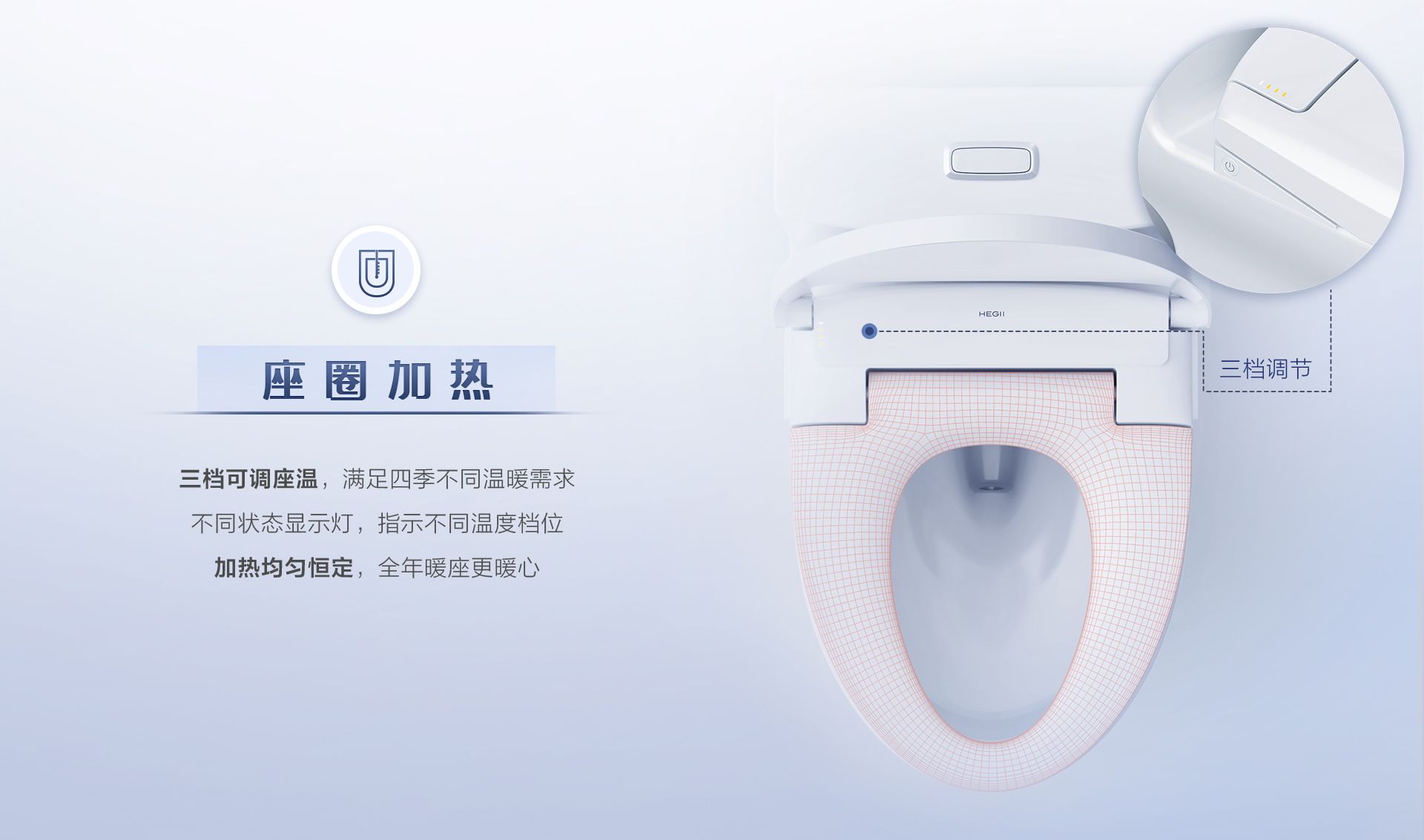 座圈加熱:加熱均勻,多檔座溫可調